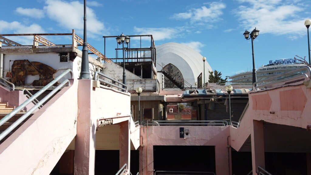 Lähdin kävelemään päämäärättömästi poispäin hotellista. Ensiksi saavuin CC Metron rannan puoleiselle sivulle ja hämmästyin, että siellä oli liiketoimintaa. Olin aikaisemmin tuominnut kauppakeskuksen raunioiksi. Rannan puolella oli ainakin Bar Liliput ja Hiperdino express. Ilmeisesti myös muutama muu ravintola ja kultasepänliike, jotka eivät olleet tähän aikaa päivästä auki.