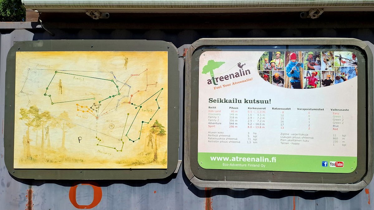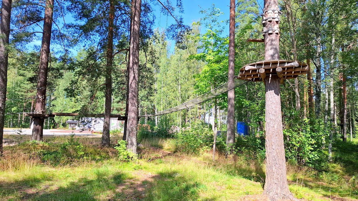 Emme lähteneet takaisin mökille vaan kävelimme katsomaan seikkailupuistoa kylpylän aukeamista odotellessa. Tietenkin sekin oli kiinni maanantaisin eli eipä tarvinnut tällä kertaa tutustua paremmin siihenkään. Seikkailupuiston tienhaarassa oli ennen vanhaan Holiday Club Saimaan jalkapallokenttä. Maalit vielä olivat jäljellä, mutta muuten kenttä oli jo rehevöitynyt ja osin jopa metsittynyt. Olemme törmänneet tähän aiemminkin Holiday Clubin kohteissa. Vanhoja harrastuspaikkoja ei huolleta eikä toisaalta maisemoidakaan vaan jätetään kasvamaan vain umpeen.