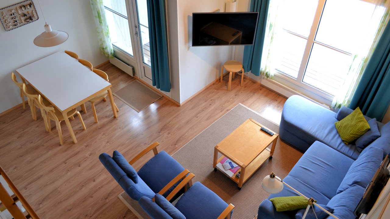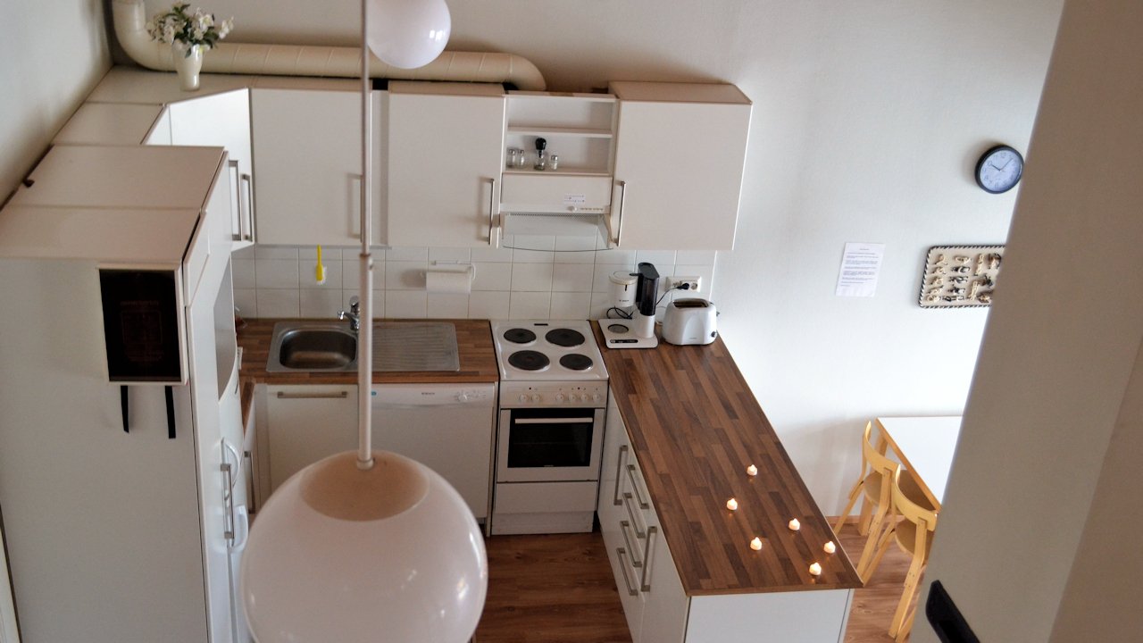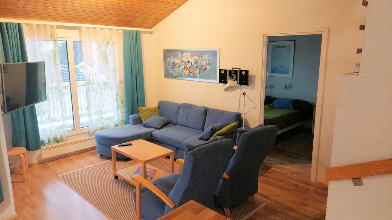 Olimme perillä neljän korvissa. Loma-asunto oli mukavan kokoinen kolmio ja parvi. Huoneisto oli jo hieman aikaa nähnyt, muttei mikään pommi. Suurin ongelma oli pyykinpesukoneen puuttuminen. Kuivauskaappi kyllä löytyy. Kesällä alueella on maksullinen itsepalvelupesula, jota alueella vierailevat veneilijätkin käyttävät. Veneilysesongin ulkopuolella se on kiinni.