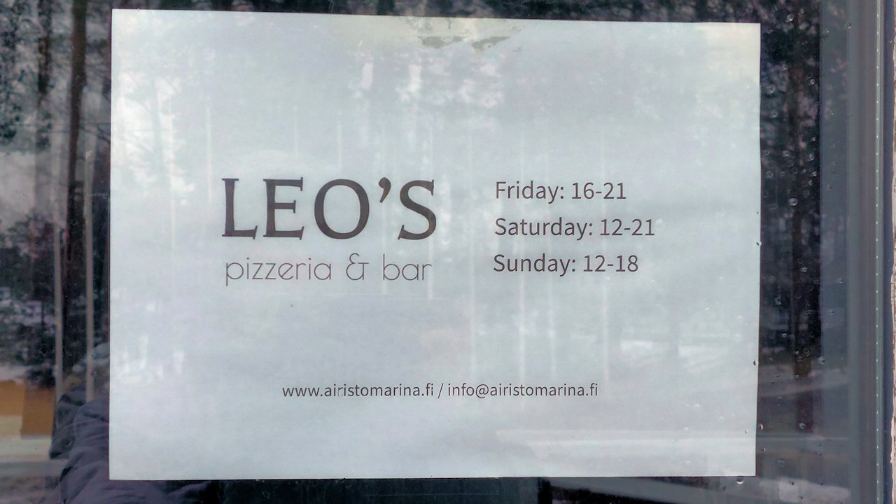 Hotellin yhteydessä on Leo´s Pizza & bar ravintola, jonka ovessa oli aukioloajat. Pitäisi olla auki perjantaina 16-21, lauantaina 12-21 ja sunnuntaina 12-18. Netissä tosin luki ravintolan avautuvan ”kesäkaudella 2024”. Netti oli oikeassa. Paikallista pizzaa ei ollut tällä reissulla saatavana.