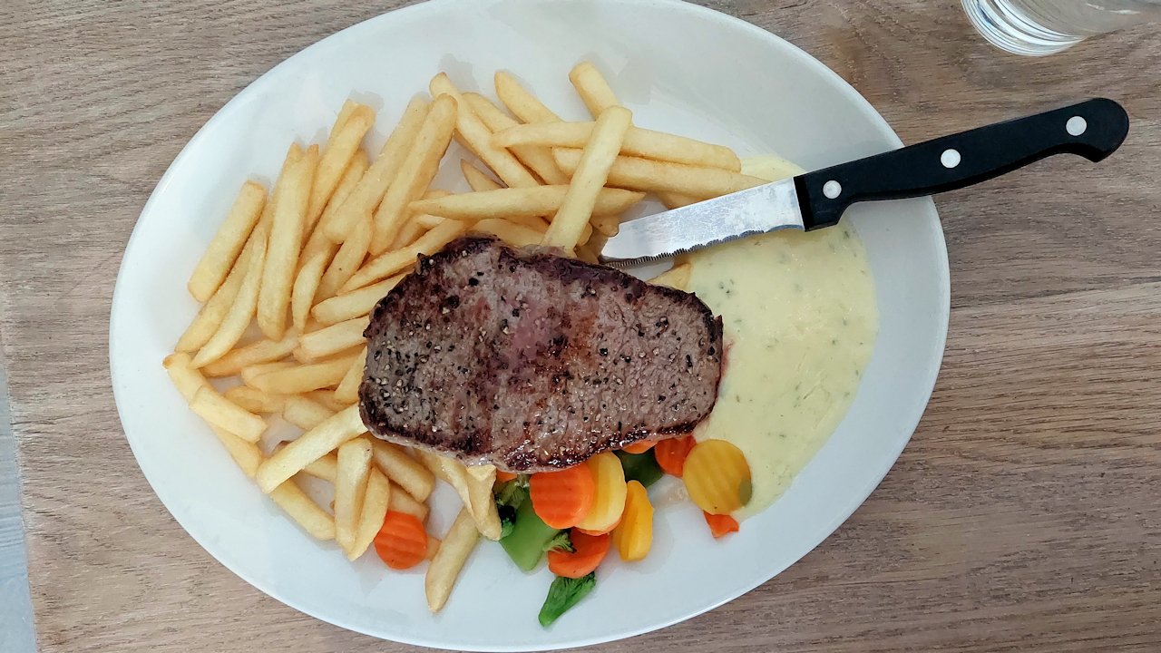 Lounaan kävimme syömässä Kamu:ssa. Maustepaahdettu lohi 12,70 € ja Naudan ulkofileepihviä 14.50€. Lounas Bufeesta 11€ ja tänään tarjolla broilerin koivet Basmatiriisillä chilimajoneesin kanssa.