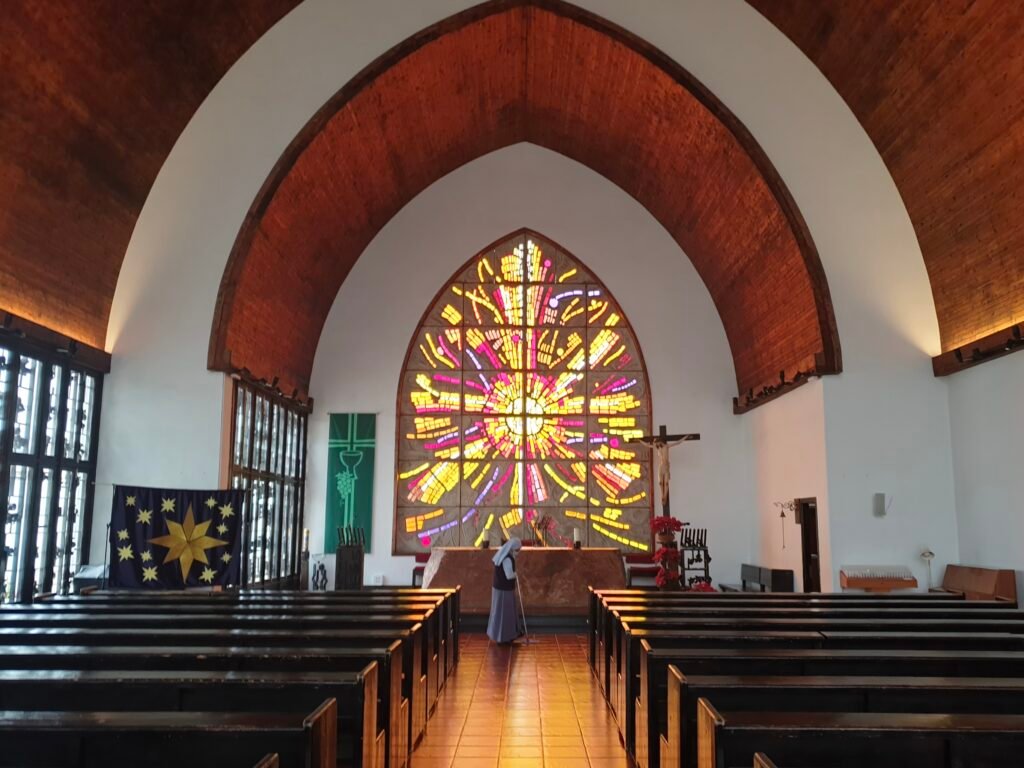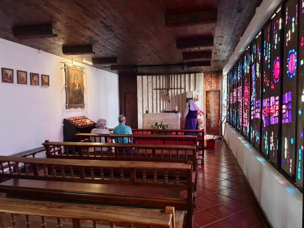 Samaa koristelua löytyy myös kappelista. Sakastista (kuvan oikealla reunalla) en kuitenkaan kehdannut käydä ottamassa kuvia. Siellä hääri useampikin nunna.