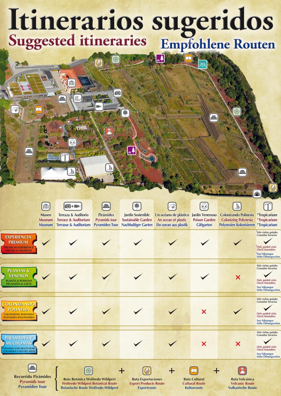 Vuonna 2017 Pirámides de Güímar sai arvostetun kasvitieteellisen puutarhan nimen Ibero-Macaronesian Association of Botanical Gardensin myöntämänä. Pyramidien lisäksi alueella on erilaisia kasvitieteellisiä näyttelyitä: