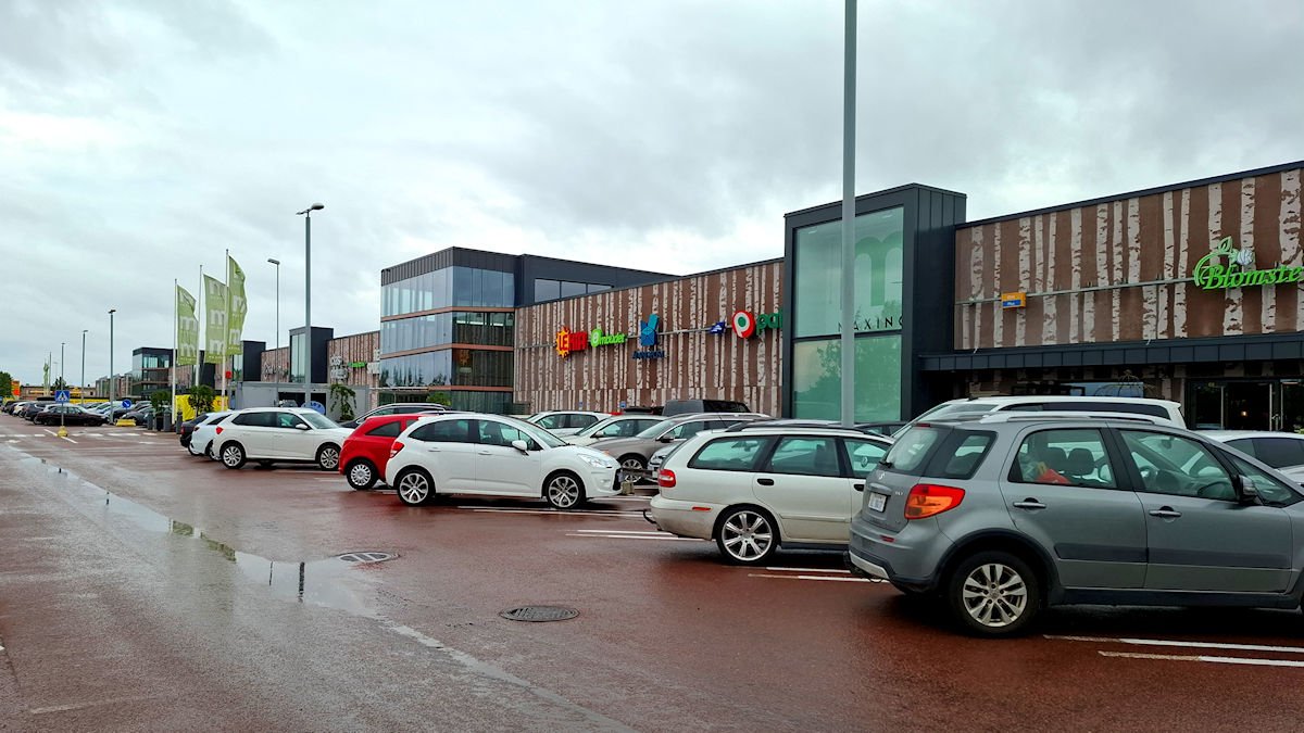 Ravintolasta suunnistimme kohti Maarianhaminan keskustaa. Pistäydyimme matkalla K-Supermarket Kanttarellenissa. Marketin parkkipaikalla on ST1:n automaatit kuten myös Maxingenin vieressä lähellä liikenneympyrää.