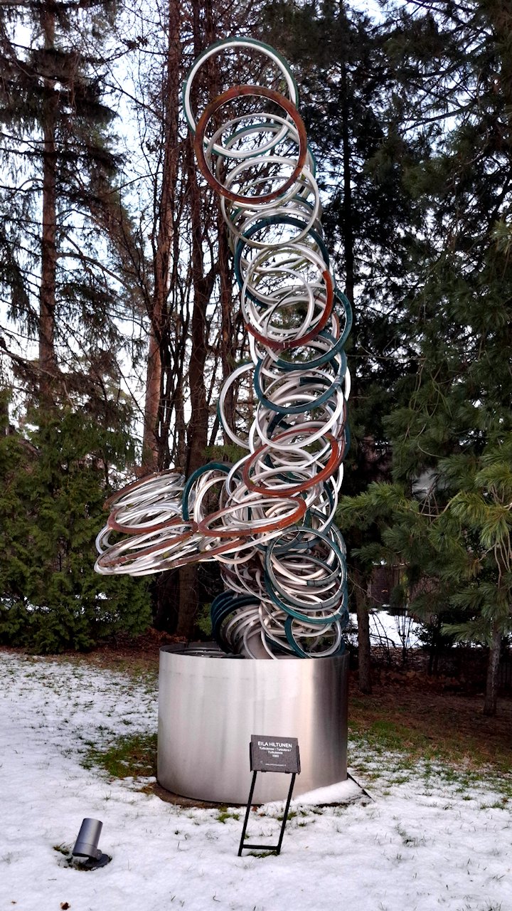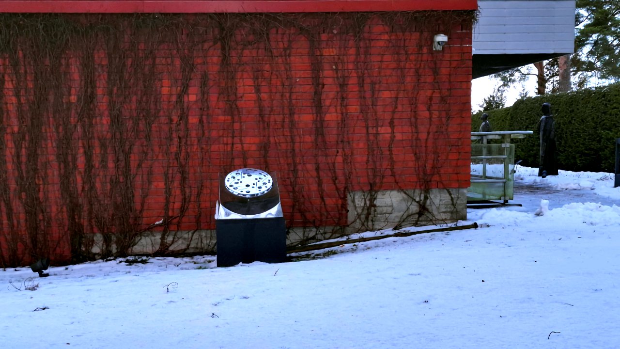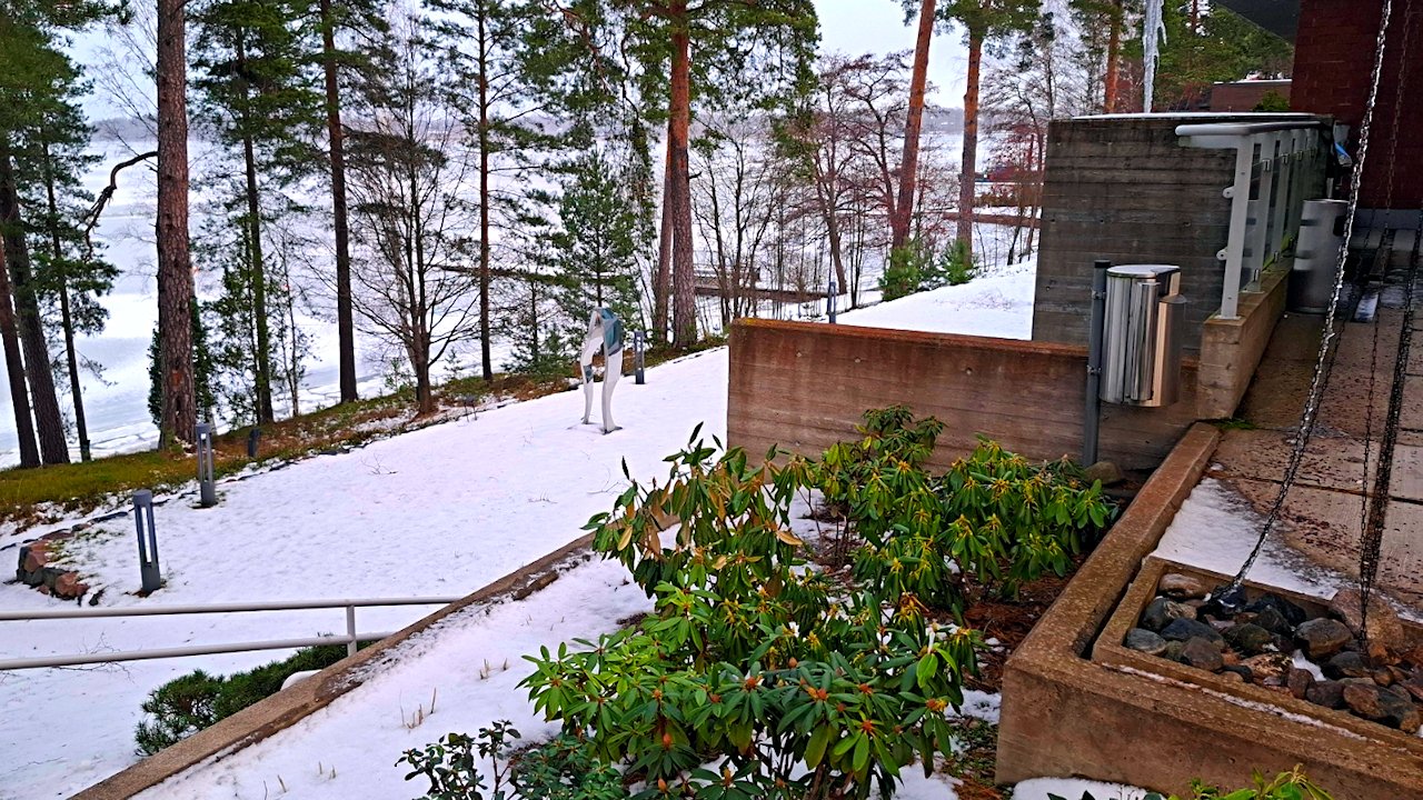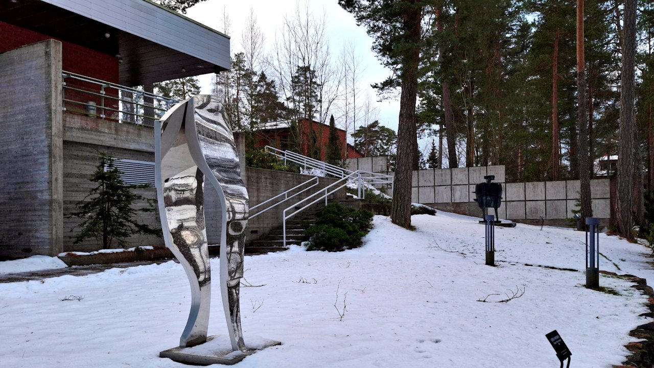 Eero Hiiroselta oli rannan puolella teos Vesiportti ja Dialogi sekä uima-altaan reunalla Saari. Eino Ruutsalolta rakennuksen seinustalla oli näytteillä Aurinkokello. Harmittavasti en löytänyt Arvo Siltamäen teosta Tyhjä hauta, joka on merkkinä museon perustajien Gunnar ja Marie-Louise Didrichsenin uurnien hautapaikoille.