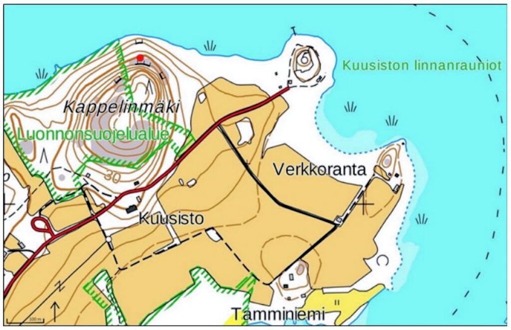 Kuusiston piispanlinnan ja kartanon välimaastossa sijaitsee kappelinmäki, joka on luonnonsuojelualuetta.