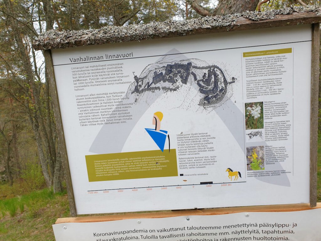 Kuusistosta ajoin Liedon vanhalinnalle. Vanhalinna on rautakautinen linnanmäki. Vanhalinna on Suomen laajimmin tutkittu ja löydöiltään rikkain muinaislinna, jonka linnavuorelta on löytynyt kivikautistakin esineistöä. Ensimäisen varustuksensa linna on saanut rautakaudella 500 luvulla tai 600 luvulla. Turun linnan valmistuttua Aurajoen suulle esihistoriallisen puolustuslinnakkeen merkitys kuitenkin väheni.