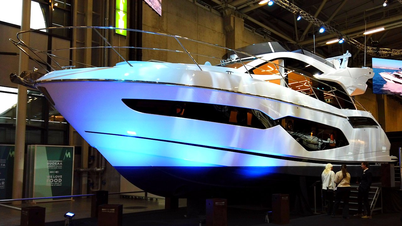 Moottoriveneitä on yli 400 ja esillä on useita kymmeniä uutuusmalleja. Kannattaa käydä katsomassa. Ainakin messujen suurin ja kallein vene eli Sunseeker Manhattan 55. Sen mitat ovat 17 metriä pitkä, lähes viisi metriä leveä ja paino on kunnioitettavat 27 000 kg. Hintaa lienee riittävästi. Edustajan mukaan näytteillä olevilla varusteilla noin 2,5 miljoonaa euroa.