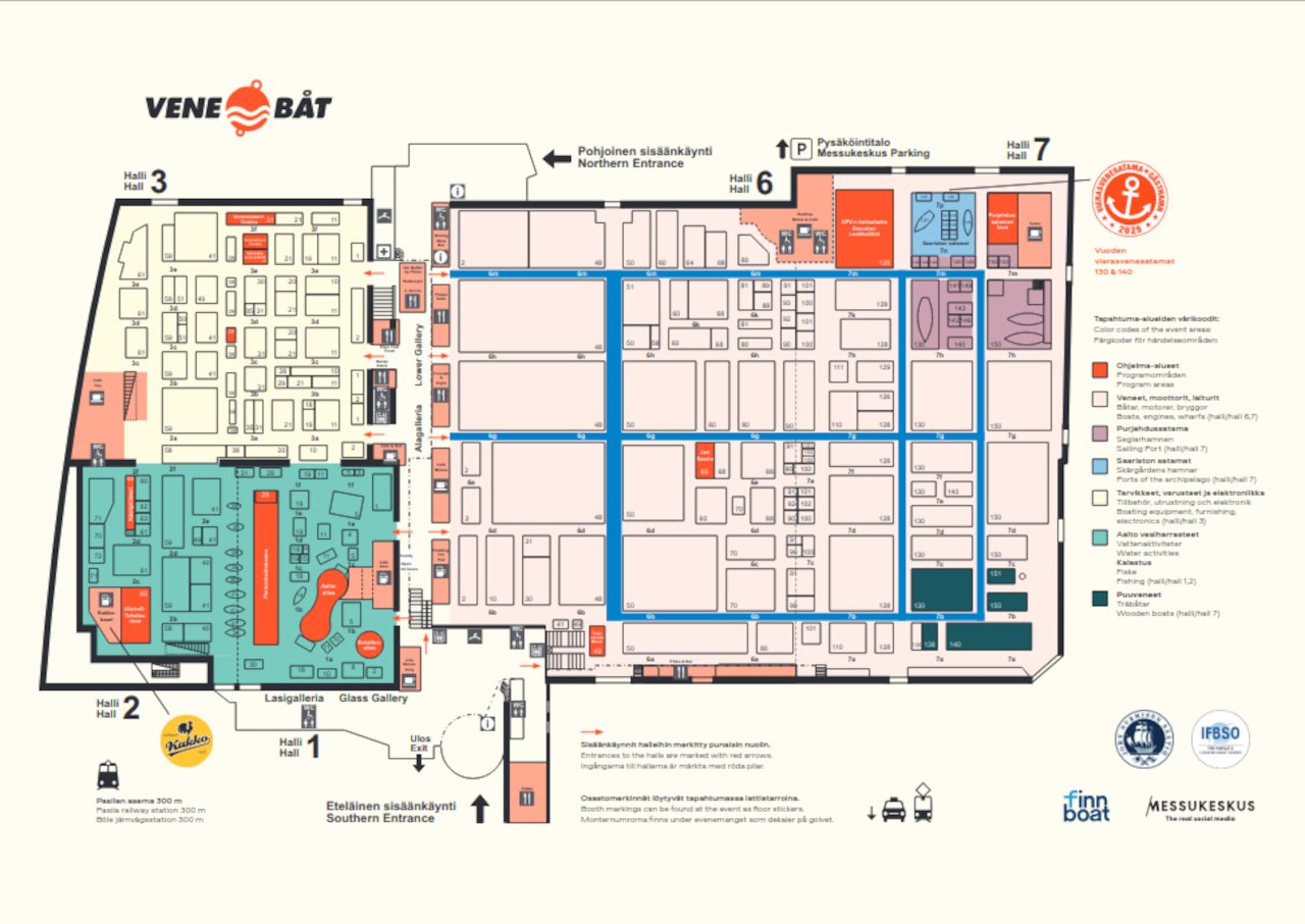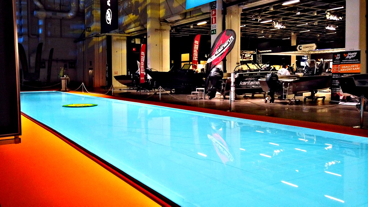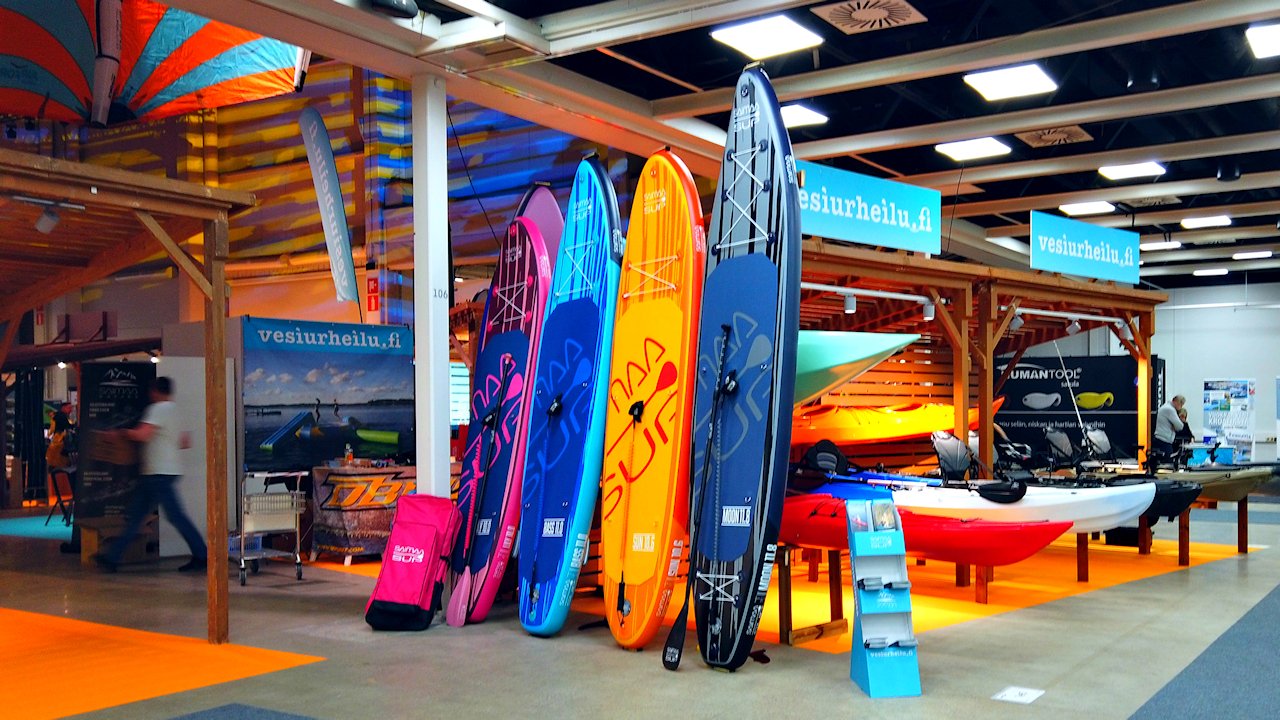 Suurin osa veneistä on halleissa 6 ja 7. Halleissa 1-2 on vesiharrasteiden esittelyjä sup-laudoista uisteluun. Suppailua voi testata Aalto-altaassa ja Perhonheittobaanalla voi kokeilla perhokalastusta tai harjoitella koukuttomalla uistimella virvelöintiä. Suurin osa aktiviteeteistakin rajoittuu juuri näihin tiloihin.