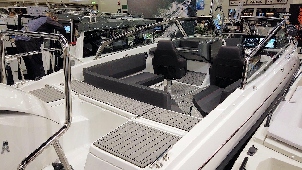 Moottoriveneitä on yli 400 ja esillä on useita kymmeniä uutuusmalleja. Kannattaa käydä katsomassa. Ainakin messujen suurin ja kallein vene eli Sunseeker Manhattan 55. Sen mitat ovat 17 metriä pitkä, lähes viisi metriä leveä ja paino on kunnioitettavat 27 000 kg. Hintaa lienee riittävästi. Edustajan mukaan näytteillä olevilla varusteilla noin 2,5 miljoonaa euroa.