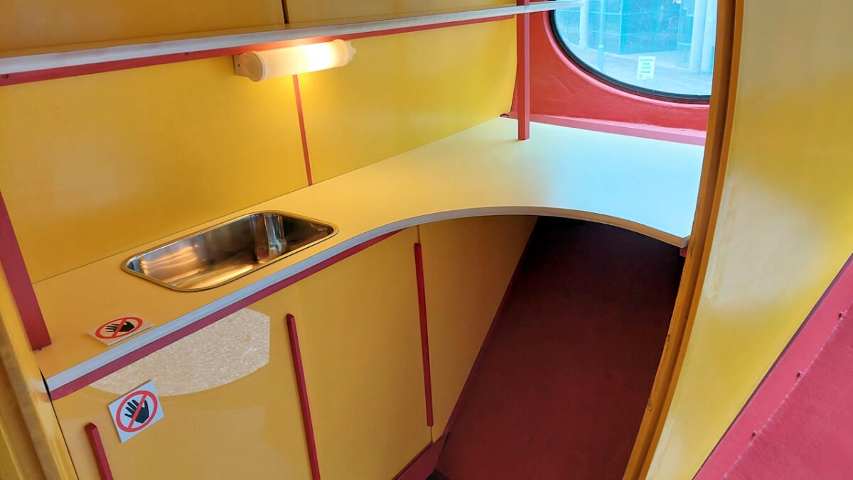 Sisääntuloaulassa on kassan lisäksi myös infotaulut, joissa kerrotaan esillä olevista näyttelyistä. Elokuussa oli tarjolla EMMAssa (Espoon modernin taiteen museo) Won Pingin Stop Peeping -näyttely, KAMUssa (Espoon kaunginmuseossa) tapahtuipa kerran -Teuvo Kanervan valokuvia 1960-70 luvuilta ja näyttelykeskus Weegeessä Matti Suurosen Futuro-talo.